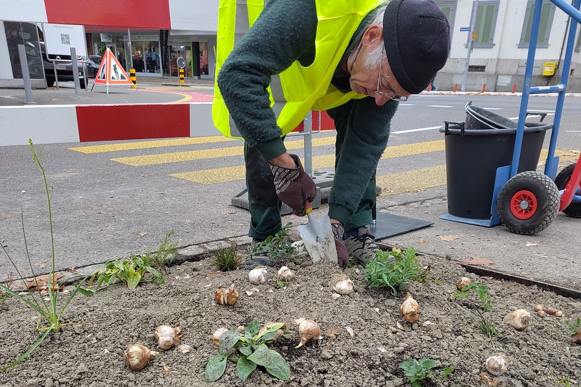 In Lenzburg wurden zwei öffentlich wirksame Flächen entsiegelt, begrünt und biodivers umgestaltet. Die IG Klima-Zukunft Lenzburg realisierte dieses Projekt mit tatkräftiger Unterstützung von über 20 Helfenden und verschiedenen Sponsoren sowie der Unterstützung durch «Asphaltknacker». Rund 60m2 wurden mit dem vorhandenen Brunnen, einer Sitzbank und einem neu gepflanzten Baum zu einem «Pocket Park» umgestaltet. Dieser bietet Platz für Pflanzen und Kleintiere und lädt zum Verweilen ein.