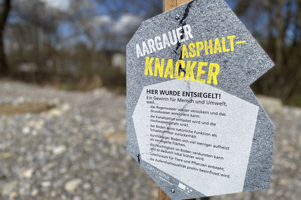 Das Projekt «Asphaltknacker» startete mit einer Pilotphase im Jahr 2021. Bis zum Ende dieser Phase im Jahr 2023 konnten fünf Gemeinden bei Entsiegelungen unterstützt werden. Das Projekt findet grossen Anklang und wurde deshalb vom Kanton Aargau verlängert.